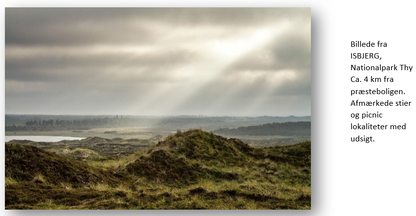 Lige op af Danmarks første Nationalpark i Thy ligger vores tre sogne - ja, den ene af vore kirker ligger endda i Nationalparken. Sognene ligger således i noget af Danmarks smukkeste natur. Her finder man skov, hede, dyrket land, sø, fjord og hav lige om hjørnet. Her i Thy er der højt til himlen i mere end en forstand og her finder man thyboere. Thyboere som sætter venlighed og imødekommenhed i højsædet. Vi glæder os meget til at byde vores nye præst velkommen her.