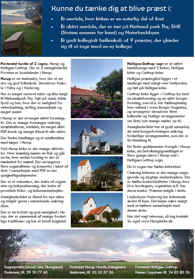 Sognepræst i Hurup-Gettrup-Helligsø Pastorat, Sydthy Provsti, Aalborg Stift