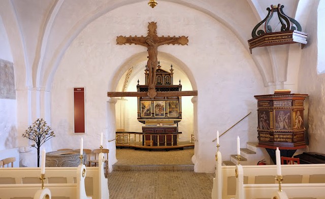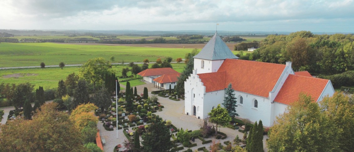 Kolt Kirke er en rummelig og stemningsfyldt hvidkalket middelalderkirke med rødt tegltag.